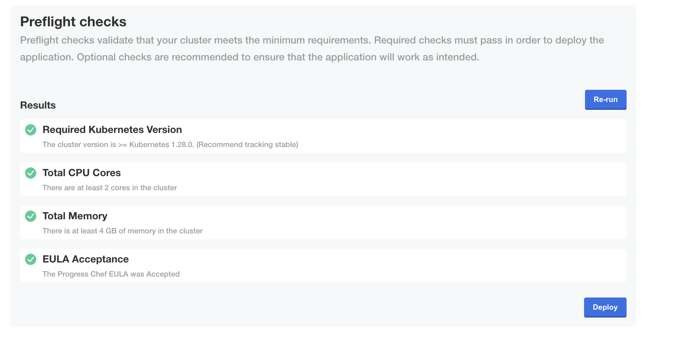 If all preflight checks pass, select Deploy.